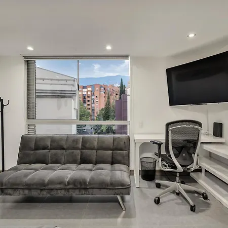 Aparta Estudio En Edificio La Frontera 아파트 아파트는 메딜린의 El Poblado 지역에 위치하고 있으며 일광욕 테라스를 갖추고 있습니다. 이 아파트에는 1개의 침실, 부엌과 1개의 욕실을 갖추고 있습니다.